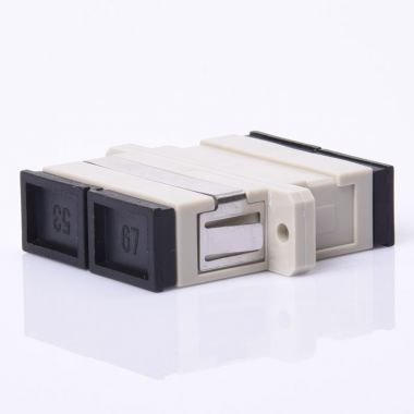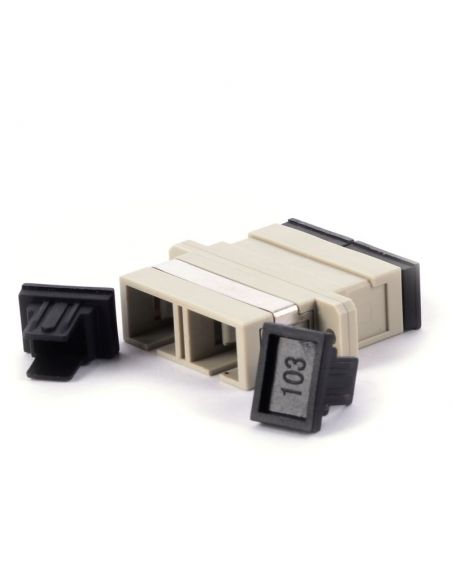 Adapter toru światłowodowego łączący ze sobą dwa złącza światłowodowe typu SC / PC MM Duplex.