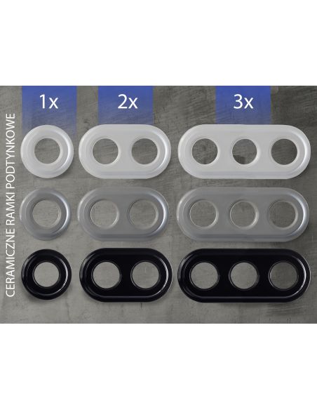 Chcąc utworzyć zestaw składający się z pojedynczych lub kilku elementów (gniazd, włączników), należy kupić ramki pojedyncze, podwójne, potrójne lub poczwórne. W tej serii posiadamy ramki ceramiczne oraz drewniane zarówno do osprzętu podtynkowego jak i natynkowego.