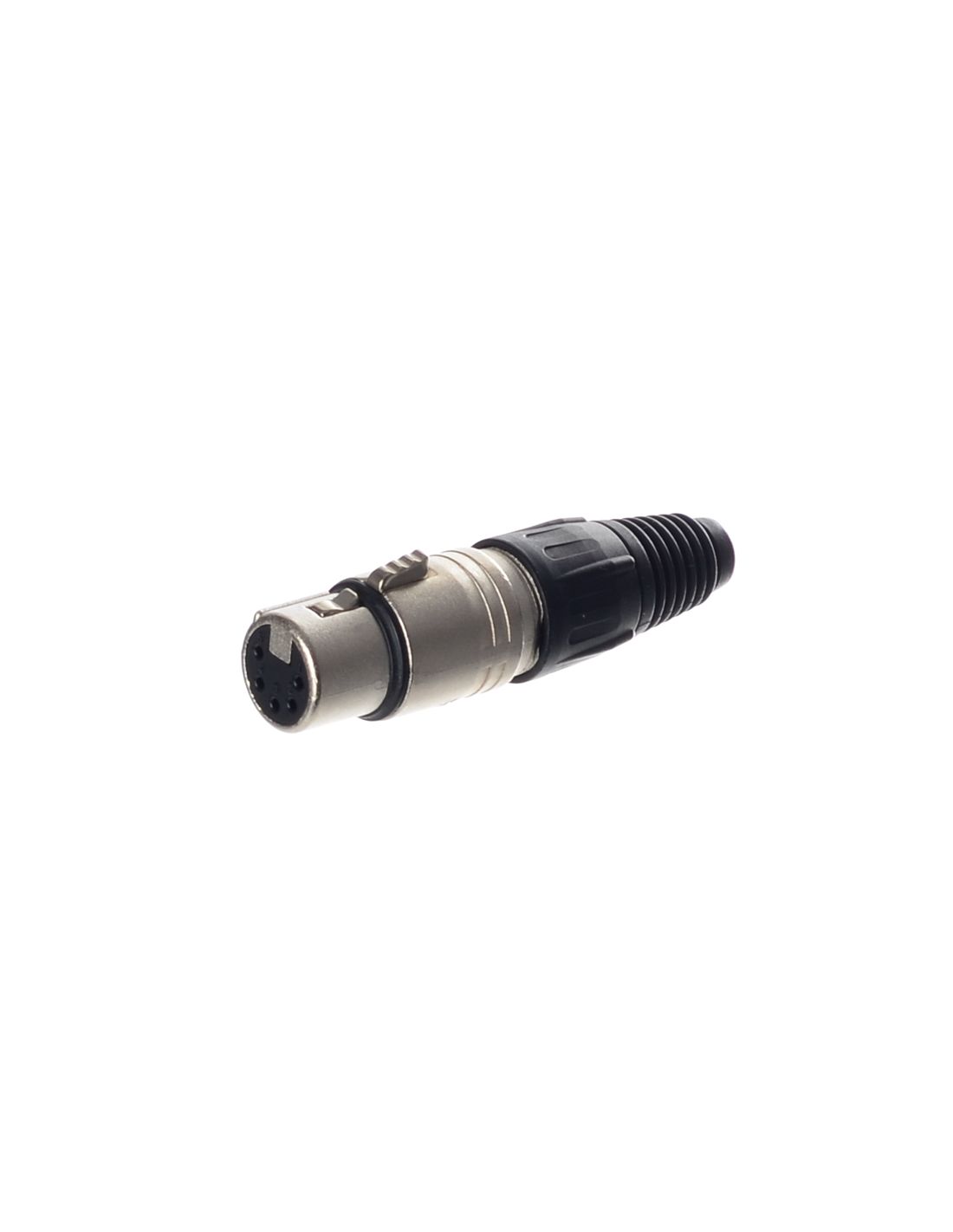 5-biegunowe żeńskie złącze kablowe z niklową obudową i srebrnymi stykami.