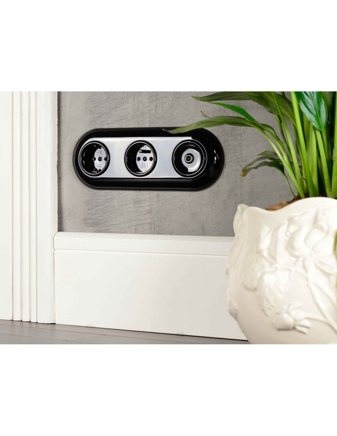 Marka JLM LUX RETRO, to producent ekskluzywnego porcelanowego jak i wykonanego z tworzywa osprzętu elektrycznego 230V, m.in. włączniki i gniazda w wersji natynkowej i podtynkowej, ramki, puszki, uchwyty przewodów, oprawy oświetleniowe, podsufitki, przepusty kablowe, żarówki, przewody w oplotach oraz kinkiety.